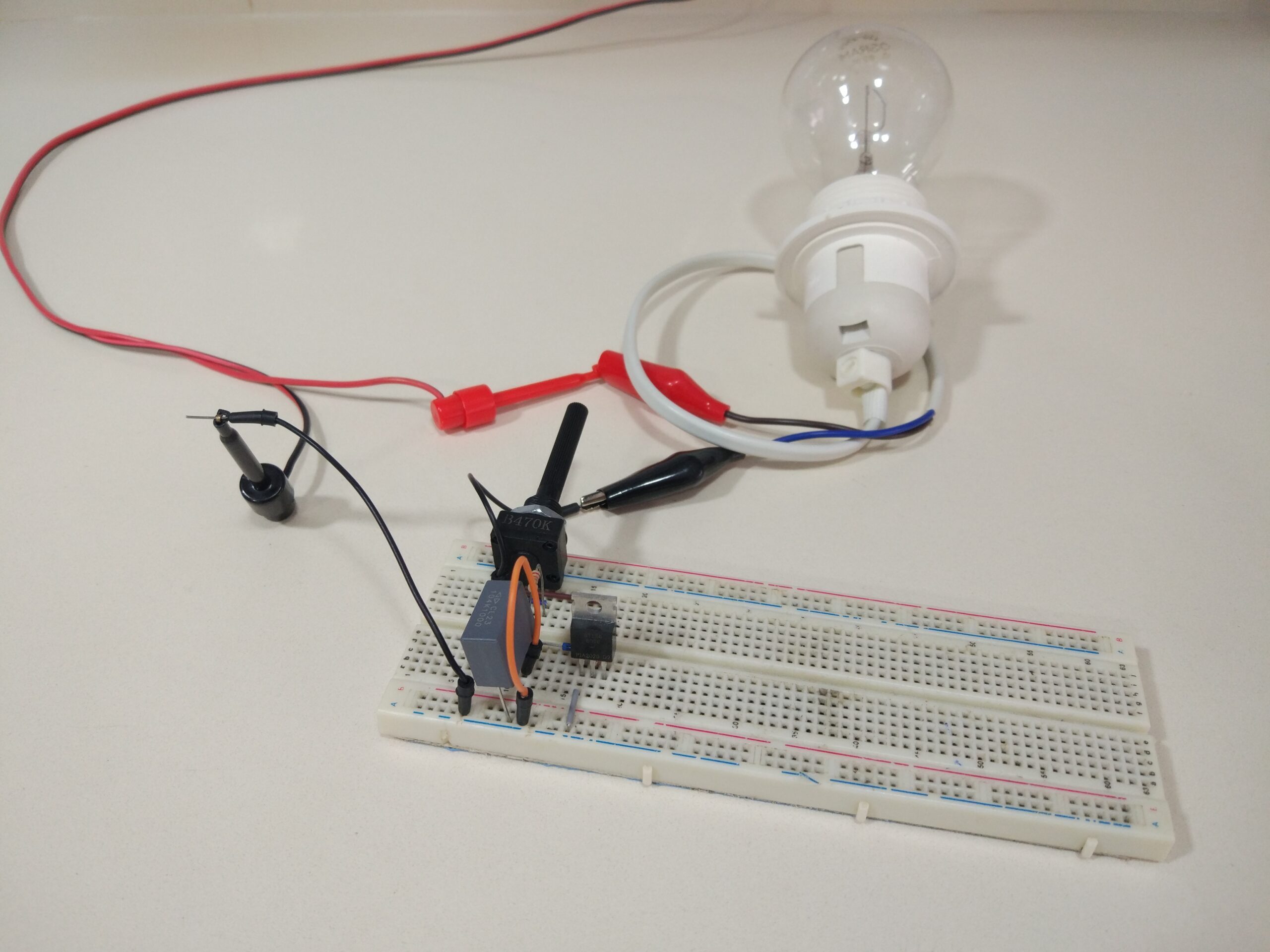 - Comprobación de un Regulador de Potencia de CA cortocircuitando A2 y A1 en el Triac.